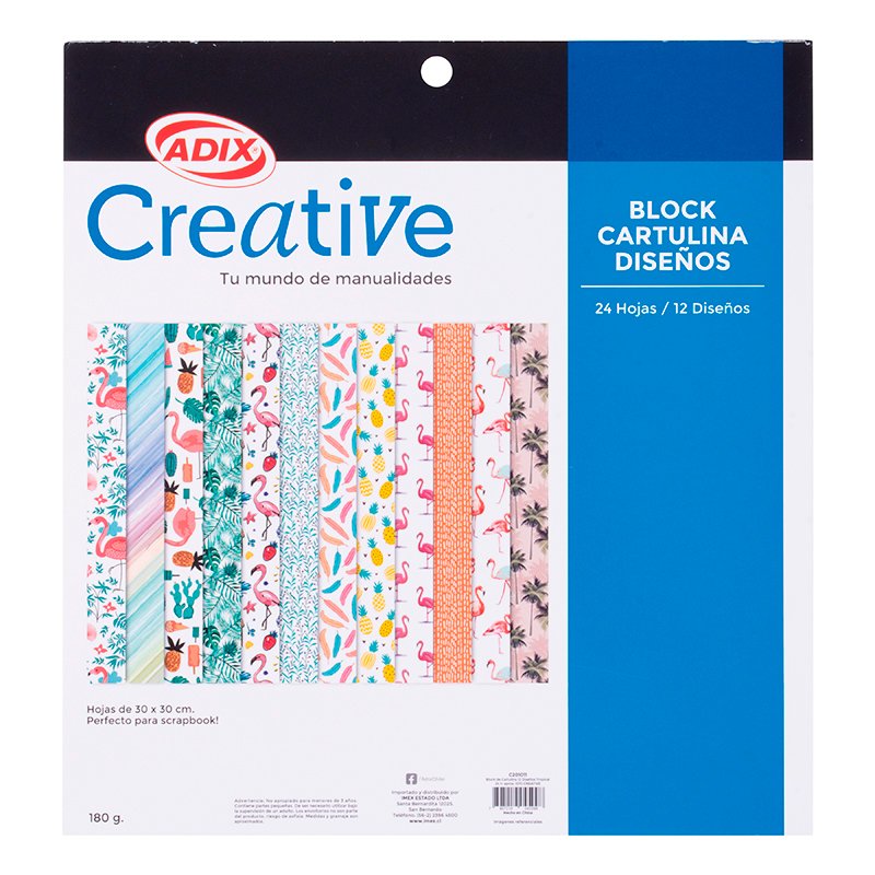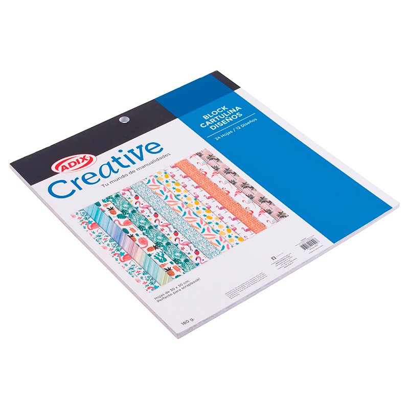 Block Cartulina 12 Diseños Tropical 24u CREATIVE