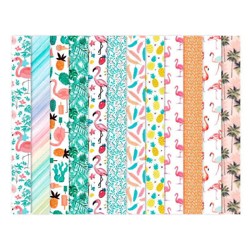 • Set cartulinas con diseños tropicales para darle color y estilo a tus trabajos.