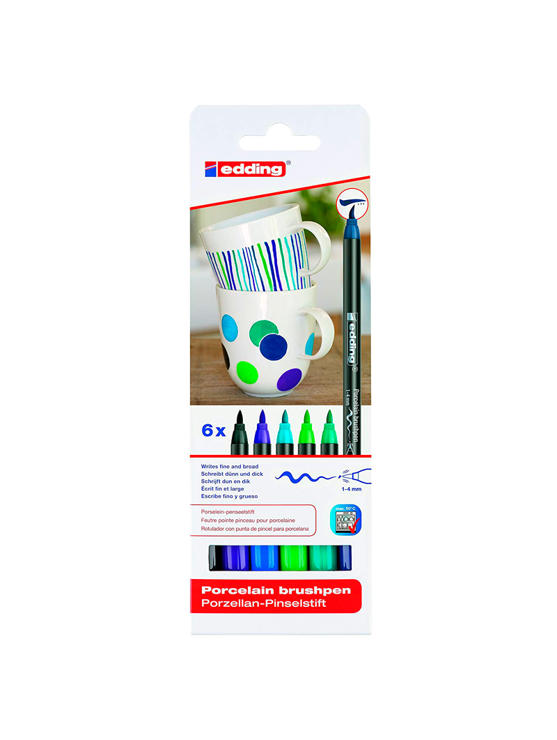 EDDING SET 6 LAPICES DE PORCELANA COLORES FRIOS PUNTA BRUSH