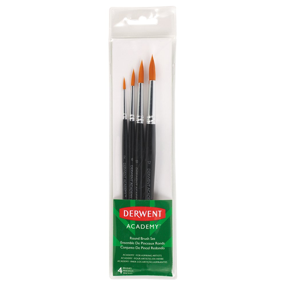 Set de 4 pinceles con diferente grosor Derwent, entrega seguridad al momento de pintar tus dibujos, ya que su