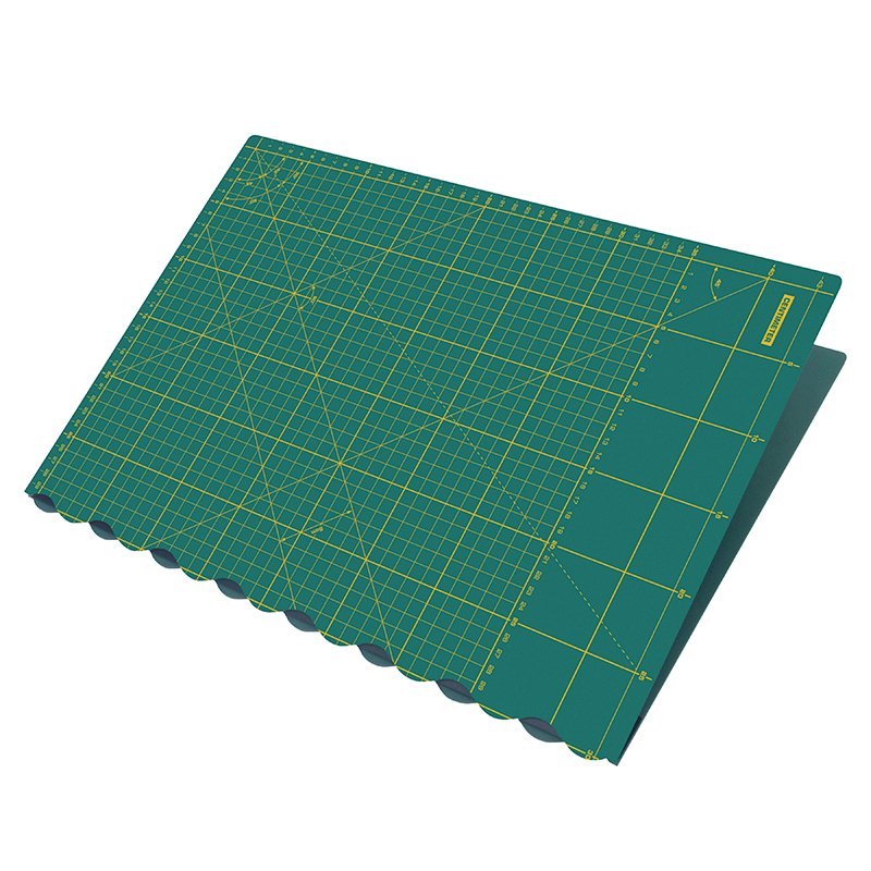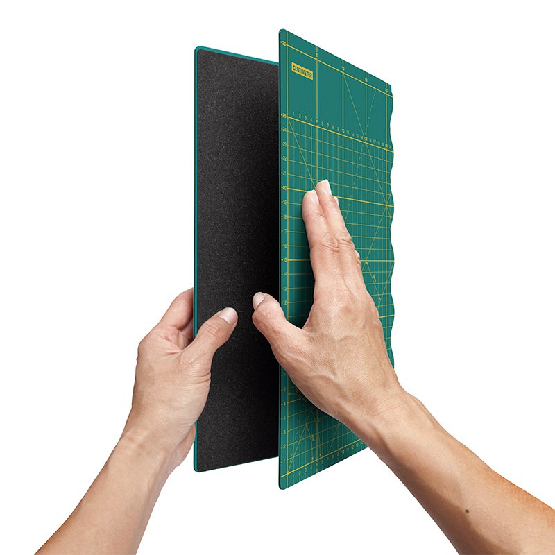 Plancha salvacortes diseñada para trabajos de quilt y patchwork con numeración fácil de leer y escala métrica, 2,6 mm de espesor. Para corte en línea recta y ángulos precisos. Fabricada en resina de olefina amigable con el medio ambiente. No usar con cuchillos MC-45 ni MC-45/DX.