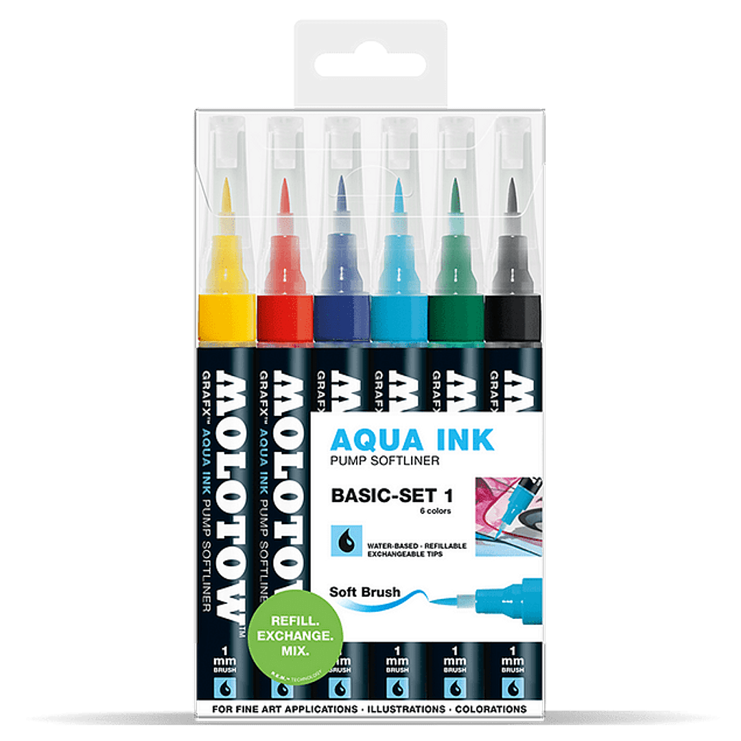 6 marcadores con punta pincel de 1mm, su versatilidad e intensidad de color, lo hace una estrella universal en el sector del diseño, los gráficos y el arte. El revestimiento suave es ideal para todas las aplicaciones de acuarela y para colorear, incluso obras de arte caligráficas no son un problema. Además, es recargable.