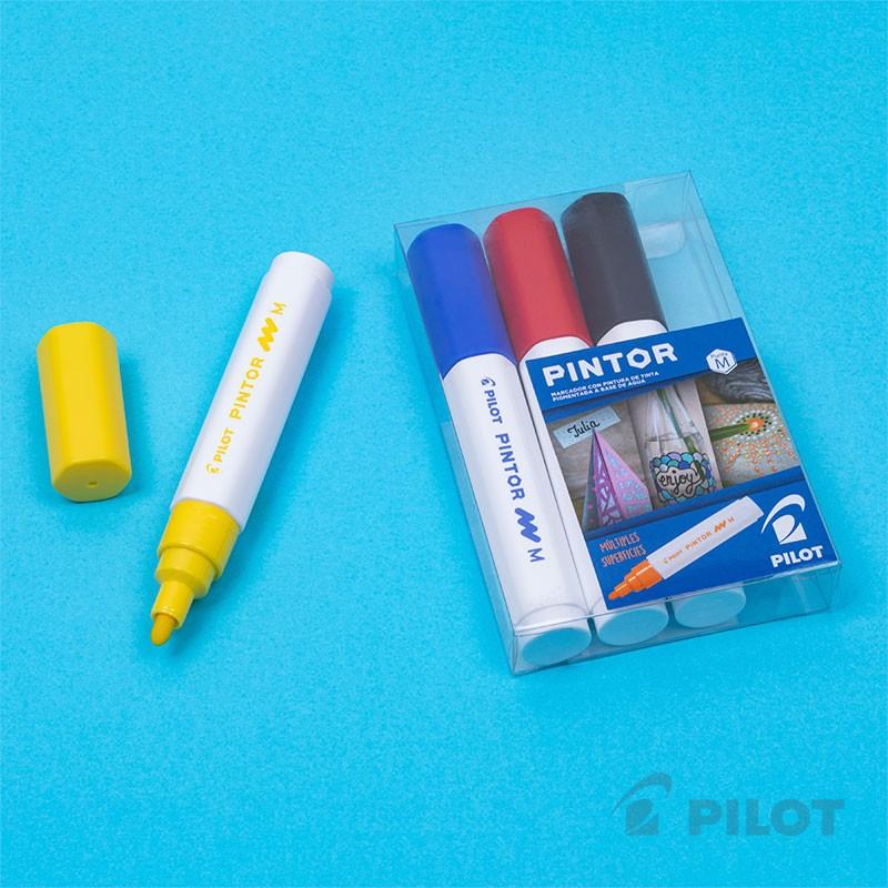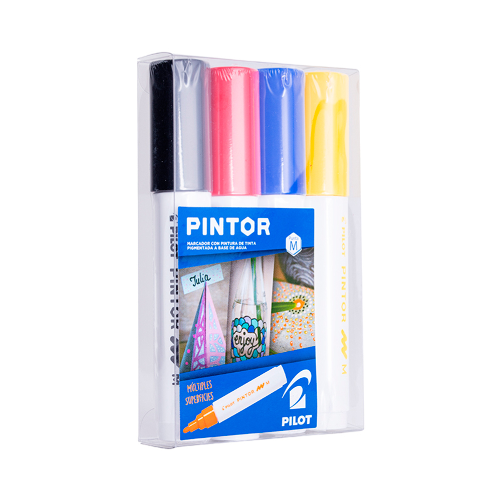 Set Pilot Pintor Medio 4 (Negro, Rojo, Azul, Amarillo )